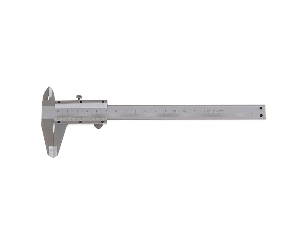 Posuvné meradlo 0 - 150 mm s presnosťou 0,02 mm, metrická stupnica v mm, hĺbkomer, kvalitná nerezová oceľ, presné spracovanie, plynulý posuv, šroubková aretácia - vhodné pre sabilnější prenos rozmerov, tabuľka prevodov jednotiek, koženkové puzdro.