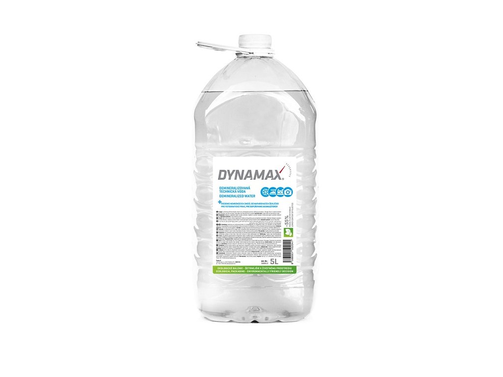 Demineralizovaná technická voda DYNAQUA je určená na riedenie koncentrátov DYNASTIC - nízkotuhnúcich zmesí do ostrekovačov, na riedenie koncentrátov DYNAMAX G10, DYNAMAX AL G11, DYNAMAX ULTRA G12 - nízko tuhnúcich chladiacich kvapalín, pre dopĺňanie do akumulátorov, do chladičov, do naparovacích žehličiek, do fotolaboratórií...
