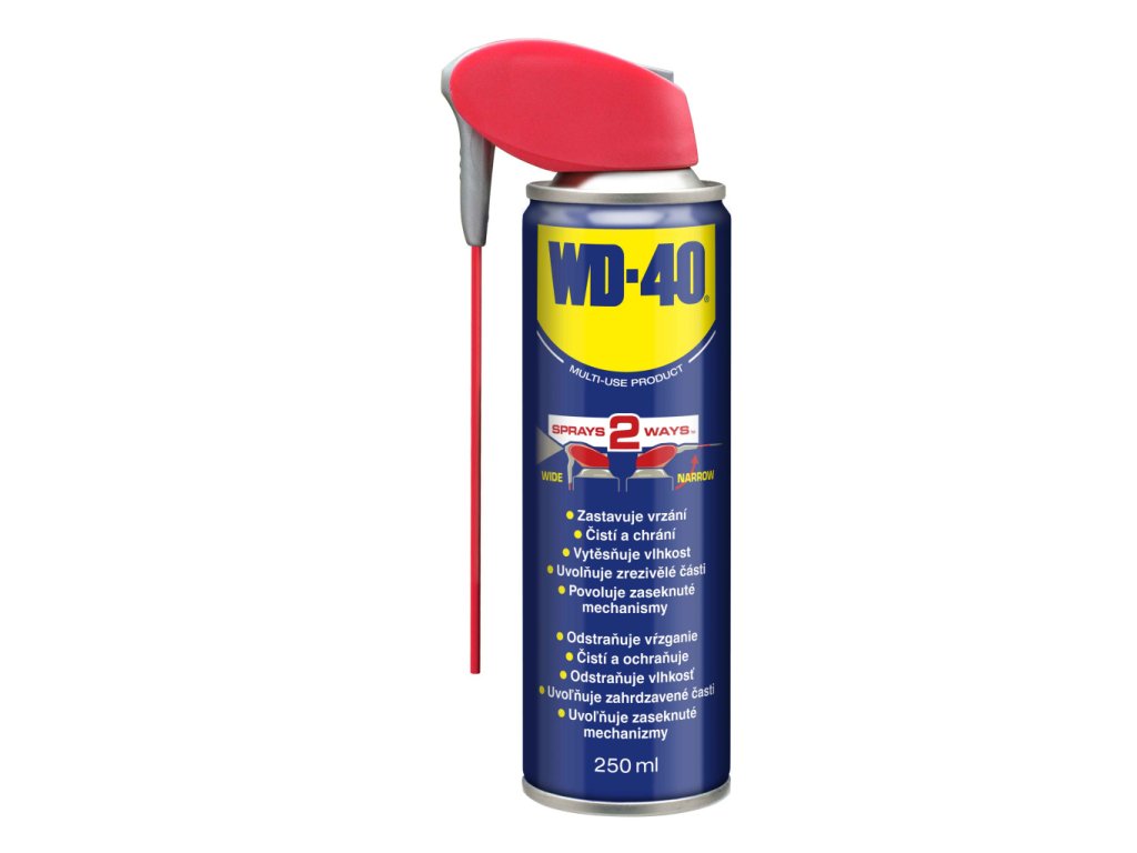 WD-40 aktívne odstraňuje vlhkosť, uvoľňuje zadreté a stuhnuté spoje, mechanizmy zámkov a pántov, rýchle preniká na zlé prístupné miesta, ochraňuje kov pred koróziou, odstraňuje a rozpúšťa staré zvyšky mazív a nečistôt, odstráni vŕzganie a obnovuje funkčnosť náradia.